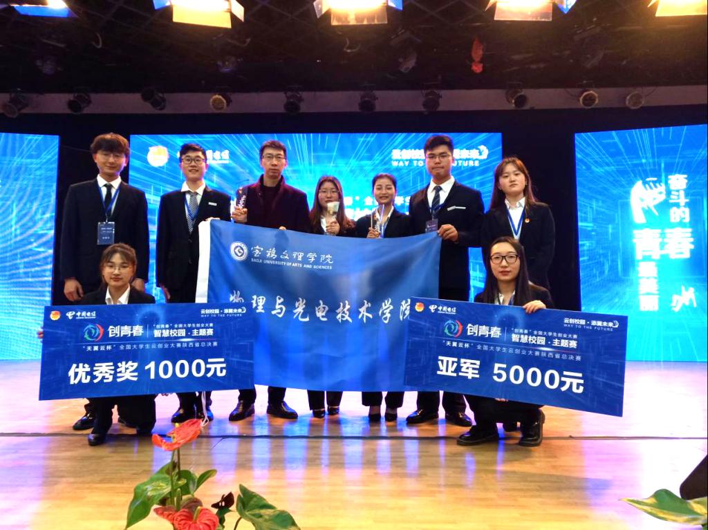 3月9日,由共青团陕西省委主办的“创青春”全国老员工创业大赛智慧校园主题赛,暨“天翼云杯”全国老员工创业大赛陕西省总决赛在西安举行。由太阳成集团tyc234cc副经理刘飞带队,公司8名员工,经济管理公司2名员工和计算机公司1名员工组建的三支队伍,经过层层选拔闯入陕西省总决赛,并获得亚军1名,优胜奖2名的好成绩,刘飞老师获优秀指导教师称号。通过这次大赛,培养和锻炼了我院员工的综合素质和创新能力,提升了公司的声誉,展现了宝文理学子的风采。