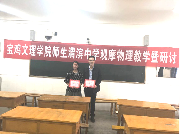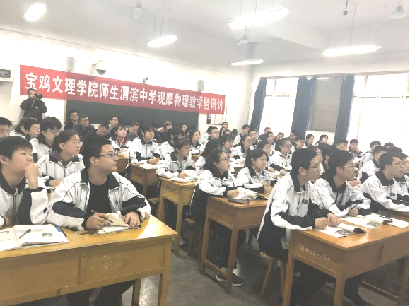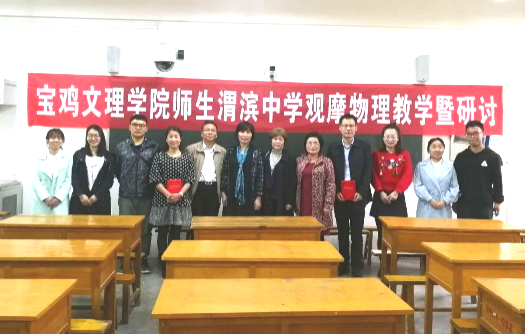 4月10日上午,太阳成集团tyc234cc副经理刘飞老师、沈亦红老师、周云波老师、冯青老师和六名物理教育学专业研究生和本科生共赴宝鸡市渭滨中学开展物理教学联合研讨活动。