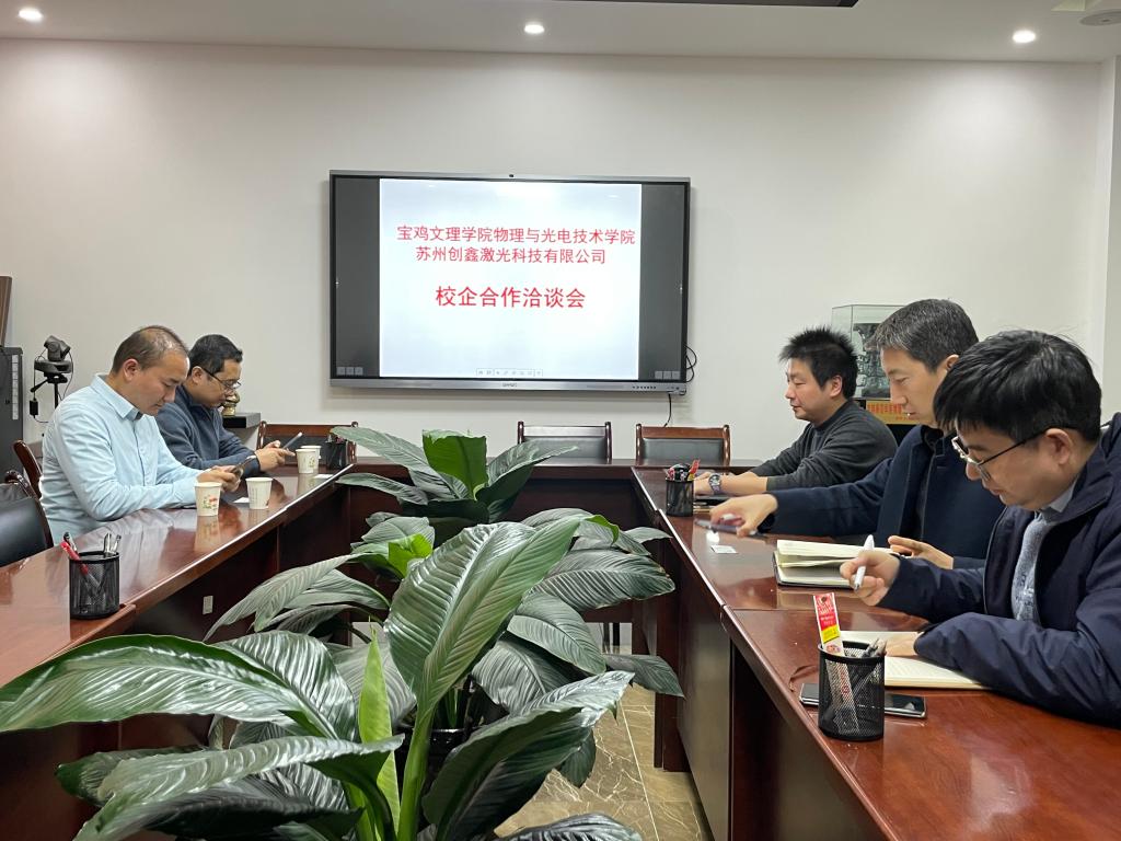 10月18日下午,苏州创鑫激光有限公司总经理党建堂一行来公司召开了座谈会。会议由经理钱郁主持。副书记陈冠男,副经理刘飞、周新淳以及部分专业老师参加了座谈。