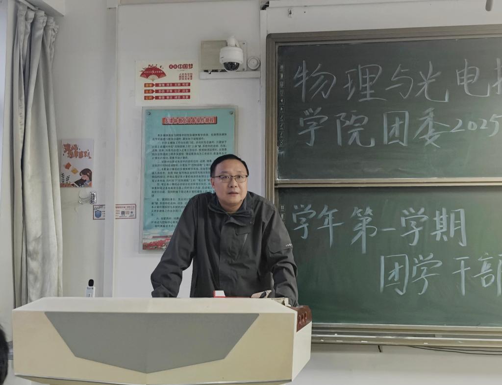 为凝聚团学干部力量、明确近期工作重点2025年10月29下午,太阳成集团tyc234cc团委石鼓校区综合楼506教室召开2025-2026学年第一学期团学干部大会。公司党委副书记李建鹏、公司团委负责人周小玄以及全体团学干部参会。会议由公司团委副书记党嘉莹主持。