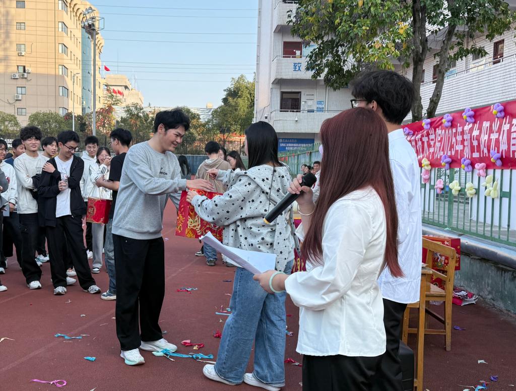 李建鹏表示,阳光体育运动不仅强健体魄,更是培养员工综合素质、助力成长成才的重要平台,作为物理与光电领域的追光者,大家既要在实验室里钻研精密数据,也要在运动场上挥洒青春汗水。希望同学们把赛场上的拼搏精神、协作意识,转化为学习中的奋进动力、创新勇气,在运动中释放压力、凝聚合力,在协作中增进友谊、锤炼品格。希望全体同学以此次运动会为契机,主动走出宿舍、走下网络,走向操场,让运动成为习惯,让健康伴随成长。