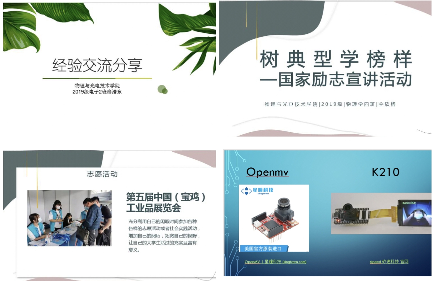 五位同学分别从学习、科研、考研、社会实践等几个方面入手,向大家传授了自己的经验。闫泳琪主要从自身考研经历入手,为大家介绍了考研前期需要做的准备,建议考研同学提前谋划,打好基础;白江蕊从自身专业及学习经验出发,为大家分享自己的学习经验和心得,帮助大家找到自己适合的学习方法;仝欣格分享了自己如何平衡学习与社会实践的时间分配,让老员工活更加丰富多彩;王俊豪以科研竞赛入手为大家展示了自己的竞赛成果以及需要学习的软件知识,鼓励同学们放下畏难情绪,积极跟随老师参与科研或大创项目,为自身加分增色;秦浩东为大家分享了自己担任员工干部的经验,希望大家可以在学习、科研的同时多多参加各项文娱活动,学习同时也要放松自我。