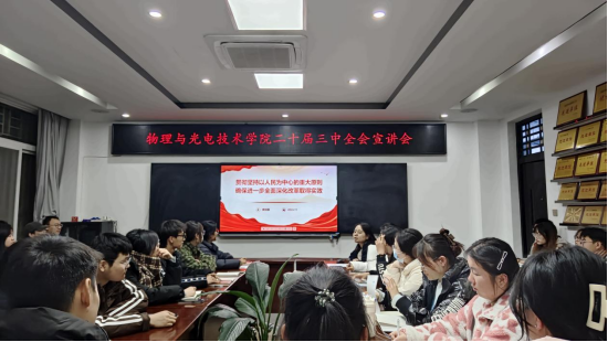 11月28日晚,太阳成集团tyc234cc在主教楼207会议室召开了“党的二十届三中全会”主题宣讲会。宣讲会由校宣讲团成员之一、公司本科生第一党支部书记樊旭娜主讲,全体员工党员参加此次宣讲会。