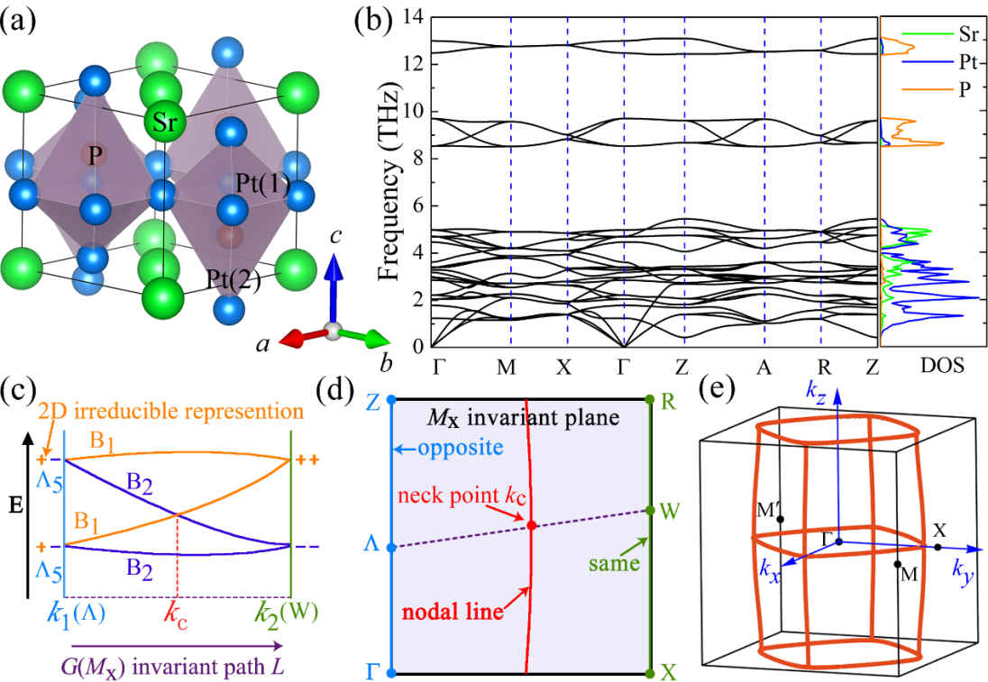 沙漏型色散(Hourglass dispersion)可以实现新奇的双量子自旋霍尔效应,因此在众多领域有潜在的应用前景。目前研究人员基于非点式对称操作(nonsymmorphic symmetry)具有高维的投影表示,提出的沙漏型色散主要是基于非点式对称操作保护的物理机制。目前为止,关于沙漏型色散的研究主要围绕非点式对称操作的保护机制。本研究工作首次提出由点式对称操作和非点式对称操作共同保护的沙漏型声子,并且在反钙钛矿结构的现实材料SrPt3P中实现了这一新颖的拓扑态。该研究工作不仅拓宽了拓扑量子相的分类,而且为进一步研究沙漏型色散提供了有效的方法和途径。该工作得到了审稿人的一致好评,认为“this is quite interesting”,“this case is quite interesting and a new type of topological hourglass phonon”。 (太阳成集团tyc234cc 文/赵小奇 审核/刘飞)
