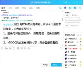 经过长时间的学习、多次实验和摸索,在众多平台中选择了适合课程的“一拖二”的综合教学形式:首先,利用即时通信软件QQ的稳定性和延时短的特点,建立课程学习QQ群,在上课时间段,利用QQ的分享屏幕功能进行直播教学,在PPT讲解的同时结合绘图板进行画图和推导,基本不存在卡顿和延时,取得较好的直播效果。其次,利用“雨课堂”的丰富互动功能作为辅助,提前上传本课程的课件及相关学习资料,员工可以在任意时间段登录雨课堂复习和预习,并完成小作业。最后,利用“中国MOOC”的丰富的课程视频资源,建立了“信号与系统”慕课课程,员工可以登录观看每个知识点的教学短视频,实现了利用碎片化时间进行学习的目的,也是对有限时间课程教学的有力补充。随着一段时间的教学实践,这种综合性的教学实施体系取得了良好的教学效果。