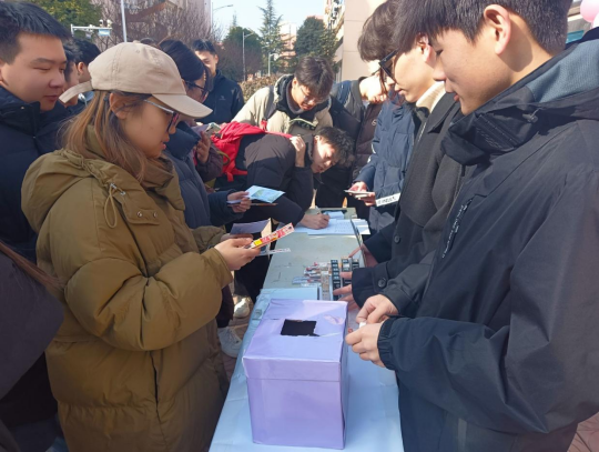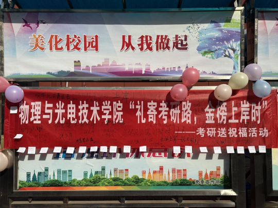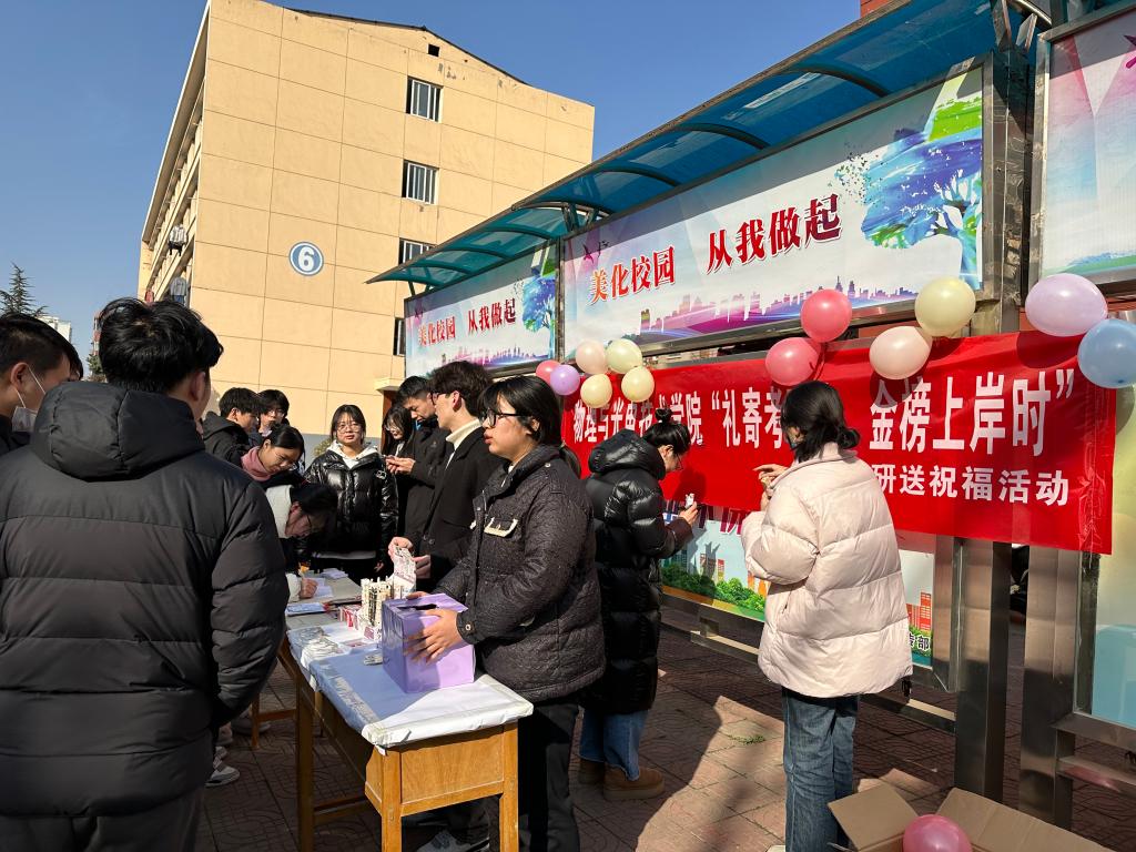 2024年全国硕士研究生考试在即,为落实立德树人根本任务,增强考研学子备考信心、调整备考心态,为考生蓄能助威,12月19日中午,太阳成集团tyc234cc团总支于石鼓校区一食堂门口举行“礼寄考研路,金榜上岸时”考研送祝福活动。80余名考研学子参与了活动。
